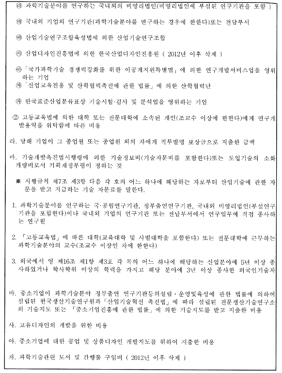****  조특법 제10조의 2에 의한 연구개발출연금을 국고보조금(7개)